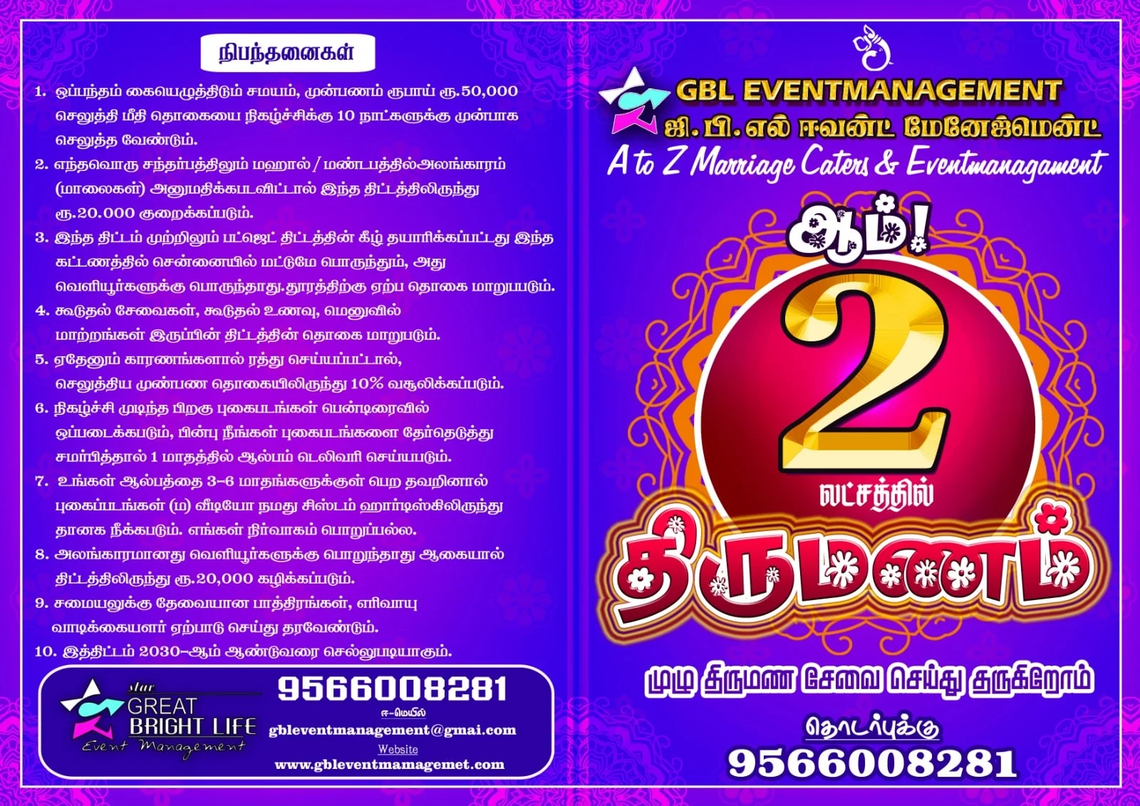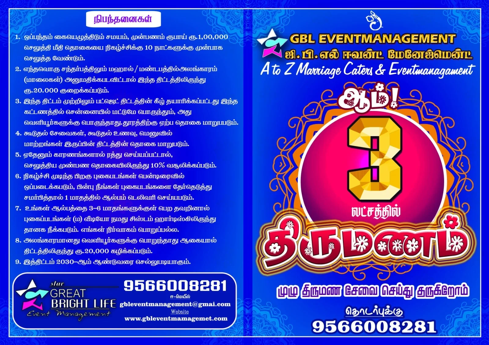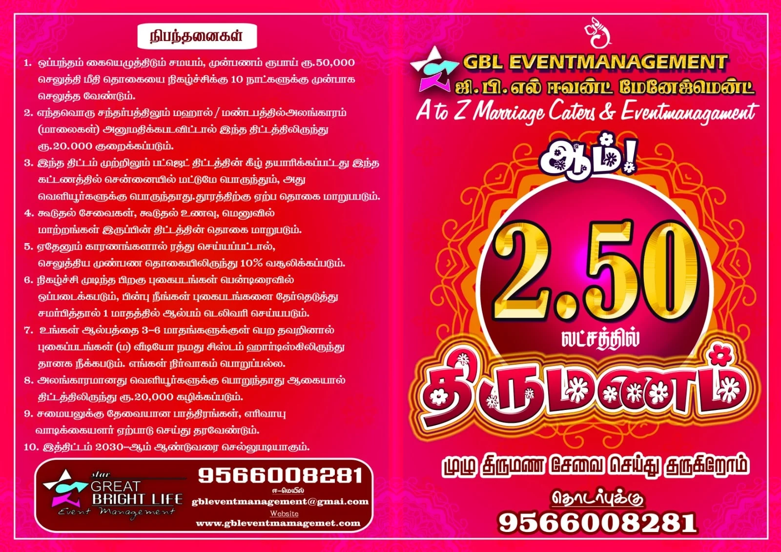 We, the best Chennai Wedding decorators who are expertise in Brahmin Weddings, Christian Weddings, Hindu Weddings, Destination Weddings with Stage Decoration and one the top wedding Event Organisers in Chennai. GBL Events & Entertainments is the best wedding planners in Chennai, offers complete wedding planning services with assistance from wedding budgets, venue decoration, wedding Photo and videography, wedding catering Services, wedding Mehndi, wedding bridal makeup, Wedding return gifts and Entertainments